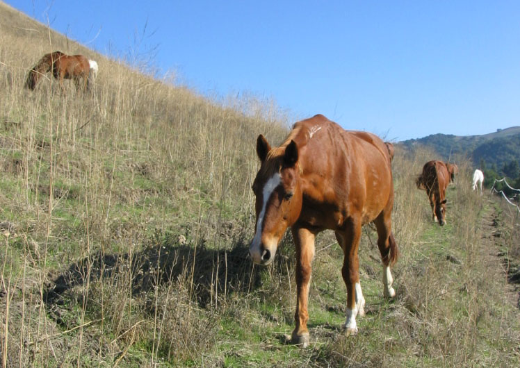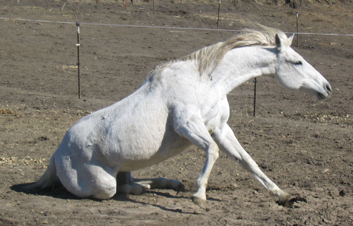 Solly really wants to be friends with Joline, the grey mare with Cushings. Joline wants to beat the crap out of Solly.